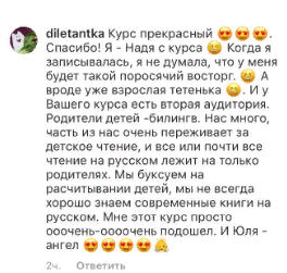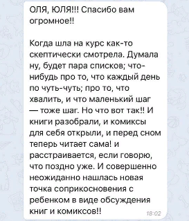 Все приемы объединены в комплекс мер, работающий на 100%! Вся команда курса поможет Вам внедрить именно комплексную систему самостоятельного детского чтения.
